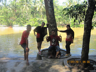 Tapi ternyata kita kurang beruntung karena kita datang pas lagi musim hujan. Semua yang kita bayang2in sepanjang jalan ternyata bedaaa banget sama aslinya. Hari itu airnya bukan berwarna hijau tosca, tapi kecoklatan dan keruh! Sedih, kecewa, bete campur jadi satu, tapi mau gimana lagi, kita udah sampe disana dan mana kita tau kalo pas musim hujan airnya jadi berubah!? Lagian ide kesini juga dadakan, so daripada puyeng2 mending kita tetep lanjuuutt!!